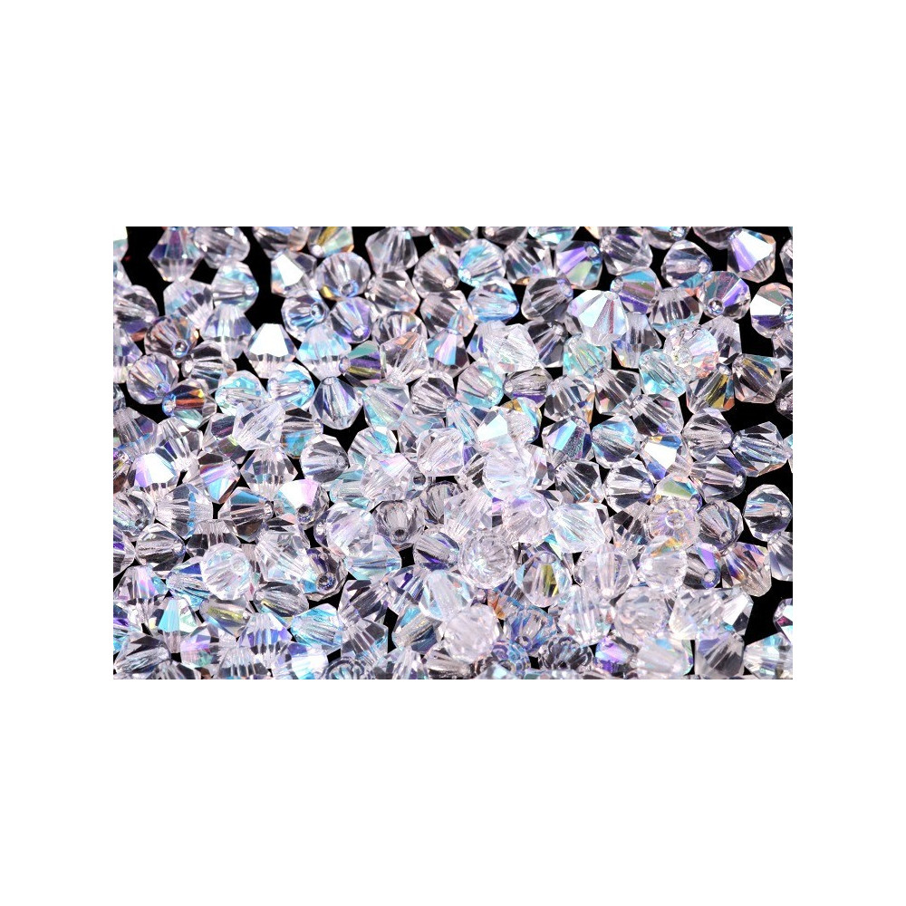 Doppelkegel 4 mm Beads size: ca. 4 mm Loch: 0,80 mm ca. Verpackung: 30 Stücke Farbe: Kristall...