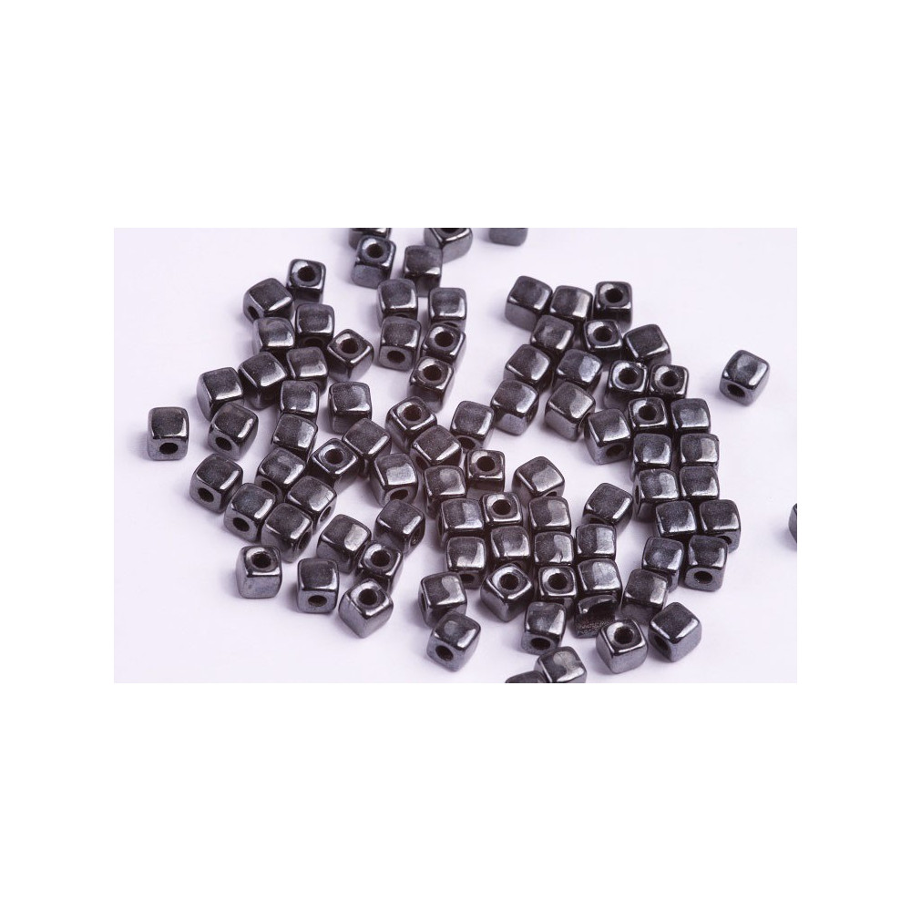 CUBIX Beads size: ca. 4X4 mm Loch: 1,8 mm ca. Verpackung: 5 g Farbe: Opaque Jet Black Metallic...