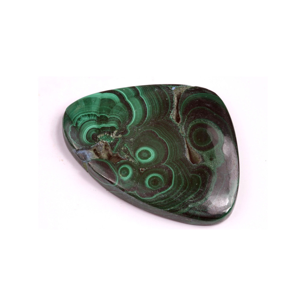 Malachitový kabošon s druzy efektem je jedním z nejkrásnějších a nejzajímavějších přírodních minerálů. Tento kámen zaujme svými bohatými zelenými odstíny a charakteristickými kruhovými vzory, které působí, jako by pocházely z jiného světa. Malachit je oblíbený nejen pro svou estetiku, ale také pro své duchovní vlastnosti, protože je považován za ochranný kámen, který čistí a harmonizuje energii.