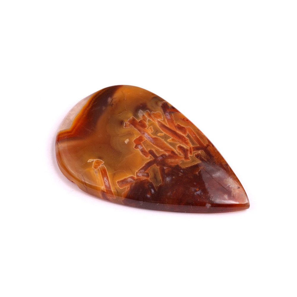 Irský achát (Irish Agate) je krásný přírodní kámen s jemnými odstíny hnědé, oranžové a karamelové, které tvoří plynulé přechody a vrstvy. Tento kámen je oblíbený pro svou zemitou estetiku a jedinečné vzory, což ho činí ideální volbou pro šperkařské i dekorativní projekty.