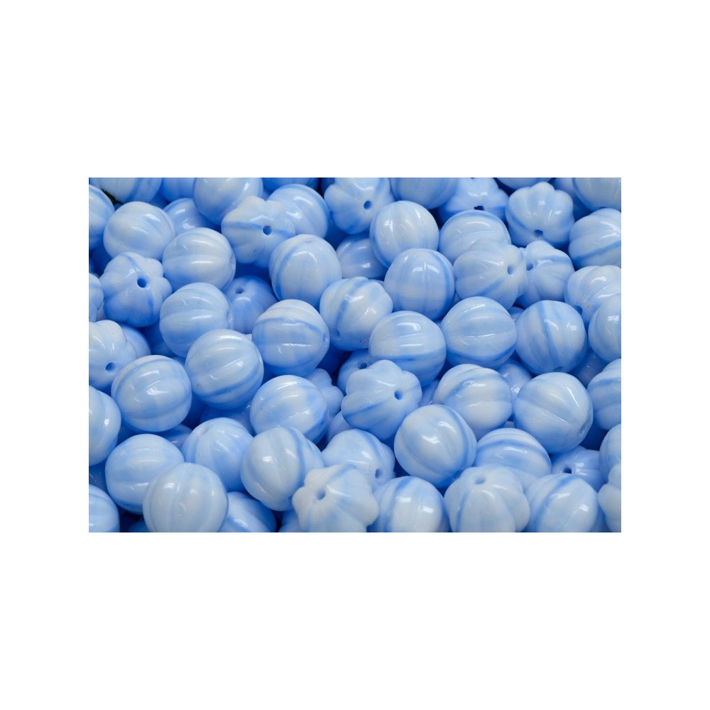 Melon Beads Nr. 1502 8x8mm Lt Blue Silk Overlay
