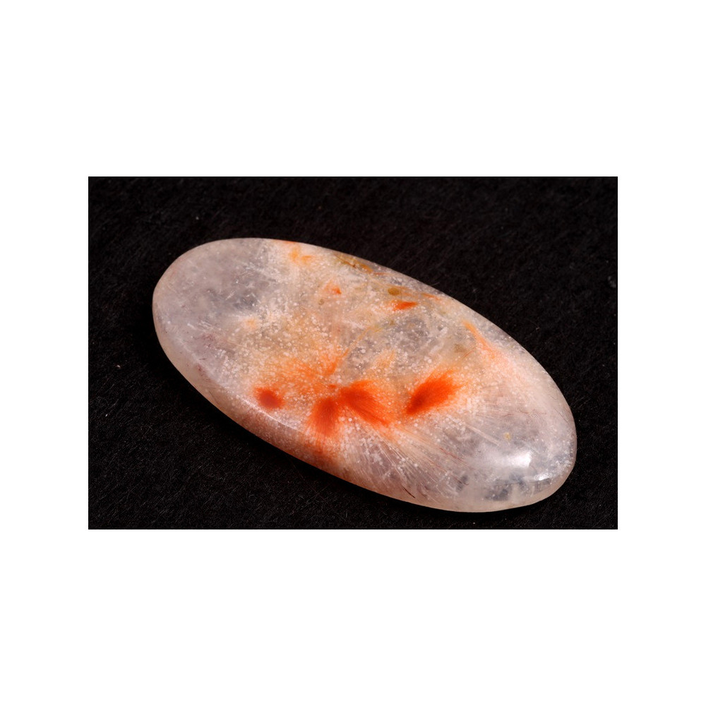 Thomsonite je nádherný kámen se zářivými červenými a oranžovými inkluzemi na jemném bílém a šedém podkladu. Tento vzácný minerál z rodiny zeolitů je oblíbený pro své jedinečné vzory a barevné kontrasty, díky čemuž je ideální pro šperkařské i dekorativní projekty.