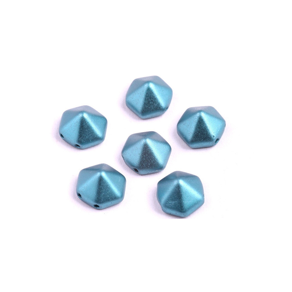 Made from high-quality Czech glass, these pressed beads feature a striking hexagonal base complemented by a raised pyramid surface, creating an eye-catching dimensionality that is perfect for any jewelry project. The two strategically placed holes allow for secure stringing and seamless integration into various beadwork patterns, making them ideal for structured designs and contemporary styles.