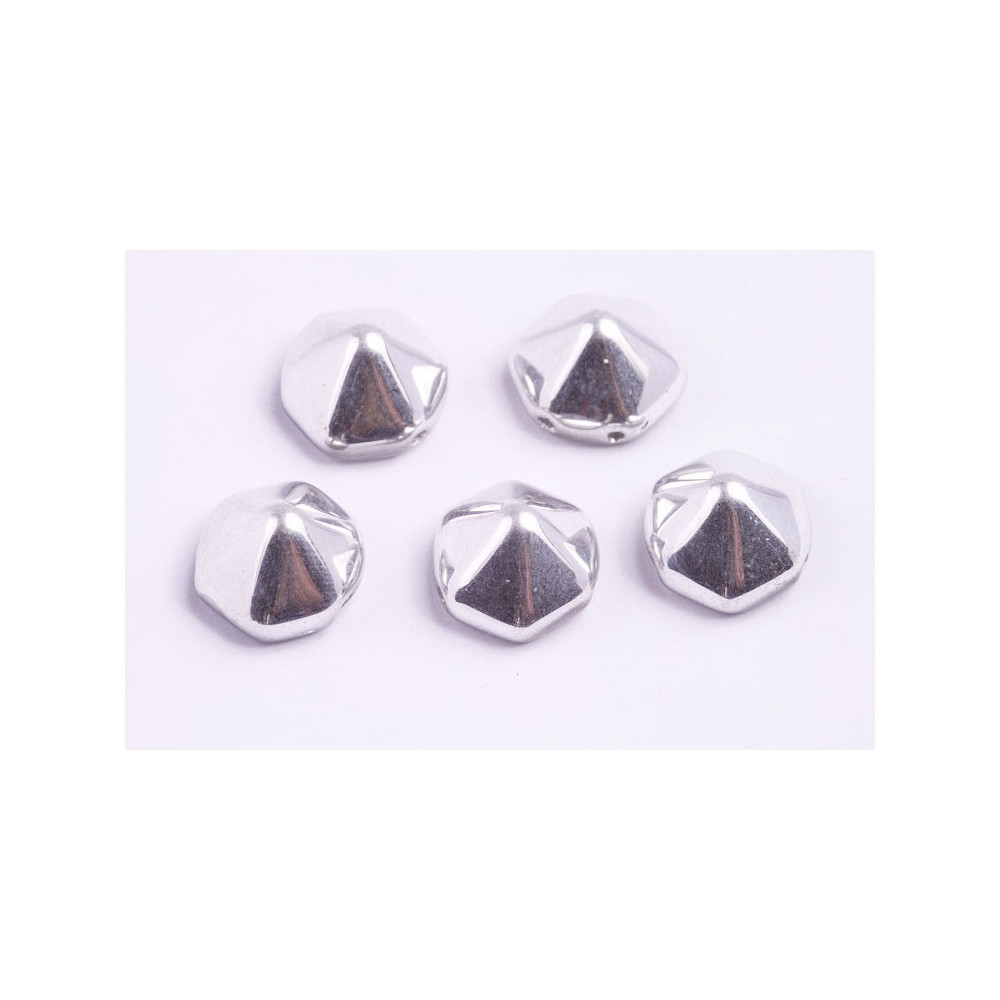Unlock the potential of your creative designs with the stunning Pyramid Hexagon Beads 12x12mm in a radiant silver hue, expertly crafted by the renowned Czech manufacturer, Rutkovský. These exquisite 2-hole glass pressed beads are not just a crafting material; they are a statement of artistry and precision, guaranteed to elevate any jewelry piece you create.