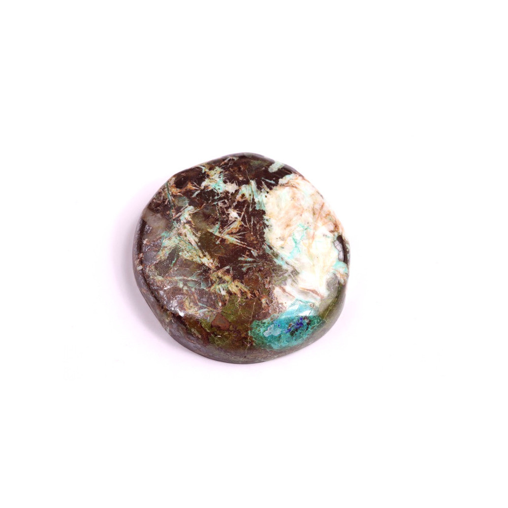 The azurit Turquoise Kaboshon is a fascinating combination of two breathtaking minerals - azurite and turquoise. This jewel combines deep brown, turquoise blue and fine green tones creating a unique natural mosaic. They make this cabošon a unique jewel that will bring natural beauty and elegance to your designs.