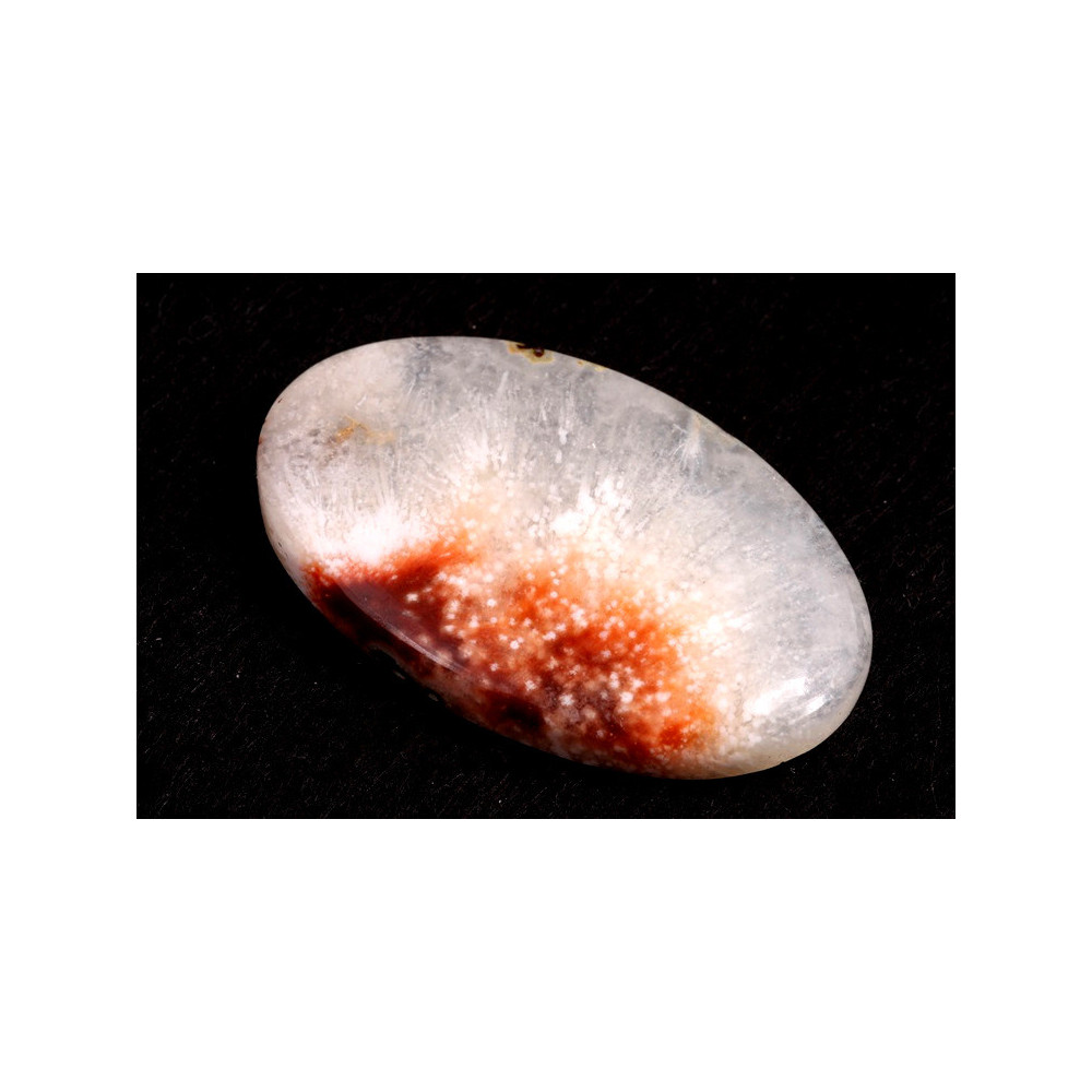 Thomsonite is a beautiful stone with bright red and orange inclusions on a fine white and gray background. This rare mineral from the Zeolite family is popular for its unique patterns and color contrasts, which makes it ideal for jewelry and decorative projects.