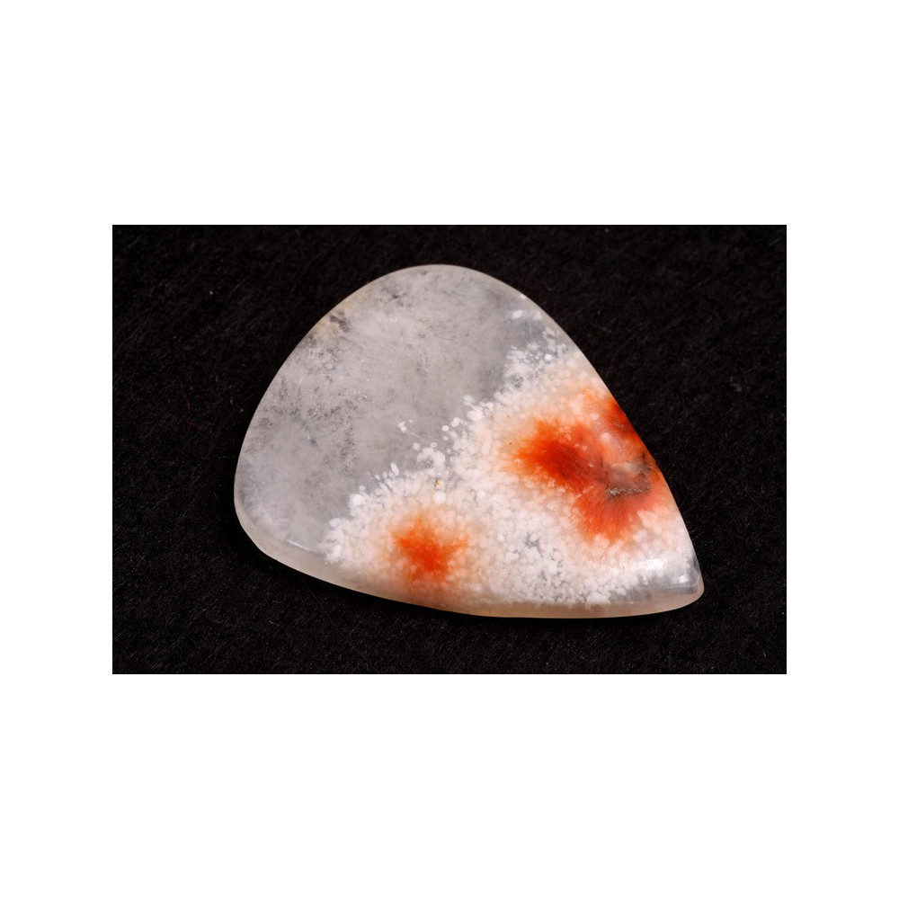 Thomsonite is a beautiful stone with bright red and orange inclusions on a fine white and gray background. This rare mineral from the Zeolite family is popular for its unique patterns and color contrasts, which makes it ideal for jewelry and decorative projects.