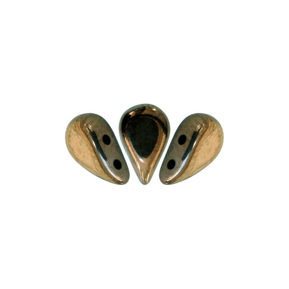 Precise teardrop-shaped Amos® par Puca® beads feature a dual-hole system engineered for architectural bead weaving and complex geometric patterns. These 5 x 8 mm elements are part of the exclusive Les Perles par Puca® collection, designed by French artist Annick Puca to allow for seamless interlocking between different bead shapes. The dark gold bronze finish provides a high-end metallic luster that adds professional depth to any handmade jewelry piece.