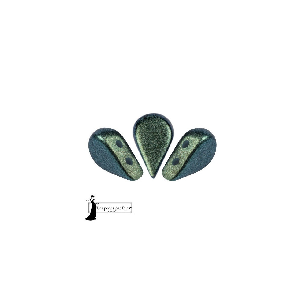 Polynesian Emerald Amos® par Puca® beads provide a sophisticated petal-shaped geometry essential for complex bead weaving patterns. These 5 x 8 mm components are meticulously pressed from high-quality Czech glass to ensure strict tolerances and hole consistency, allowing for multiple thread passes through the bead using Amos® par Puca® and S-lon FIRE thread. Designed by the renowned French artist Annick Puca, the dual-hole alignment allows for seamless integration into structural jewelry pieces that demand precision and a uniform metallic luster finish.