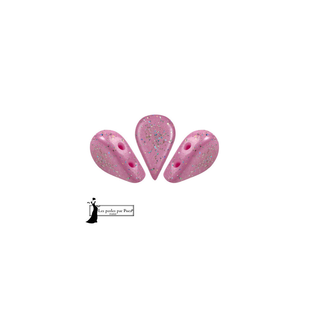 Soft rose pink tones infused with shimmering iridescent particles define this celestial Constellation Persan Rose finish. These Amos® par Puca® beads feature a unique petal or teardrop silhouette with two parallel holes, making them indispensable for botanical jewelry and intricate geometric patterns. As part of the exclusive collection designed by French artist Annick Puca, these Czech pressed glass beads embody a sophisticated marriage of Parisian style and legendary Czech glassmaking tradition. They are meticulously shaped to nestle perfectly with other components like Arcos® par Puca® to create circular mandalas or floral motifs. For a striking contrast, pair these with deep teal accents to make the pink pop.
