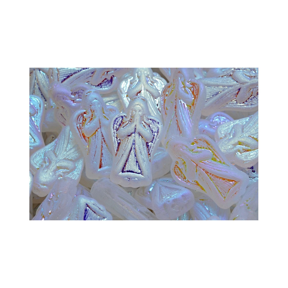 Working with such specific shapes requires high-quality manufacturing to ensure consistency in the pressing process. These beads are produced in small batches by a family-owned factory, ensuring that the iridescent finish is applied evenly across every piece. Whether you are building a delicate pair of earrings or adding a focal point to a bracelet, these glass angel components provide a timeless elegance that transcends seasonal trends.