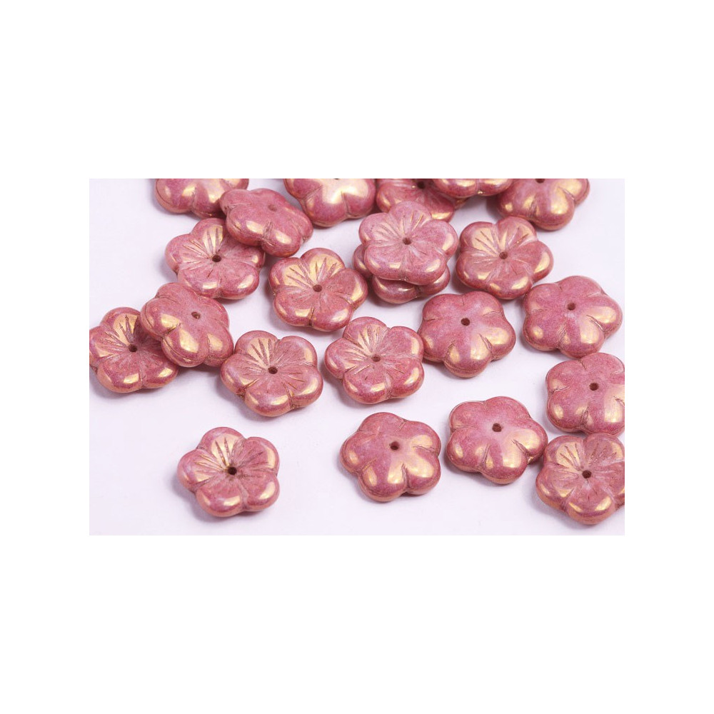 Apple Flower Beads 14 x 14mm Mauve with Gold Luster 02010/14469