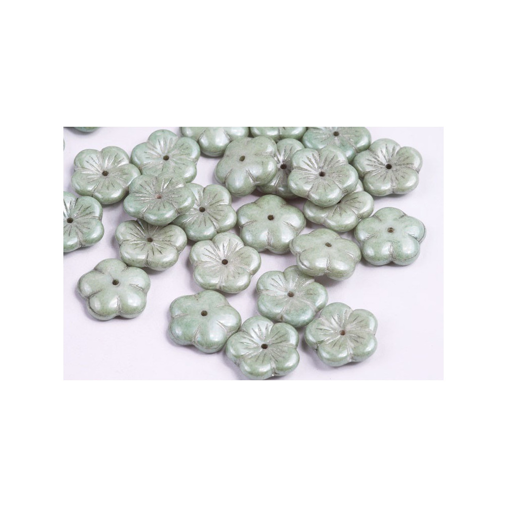 Apple Flower Beads 14 x 14mm White Alabaster Green Luster 02010/14459