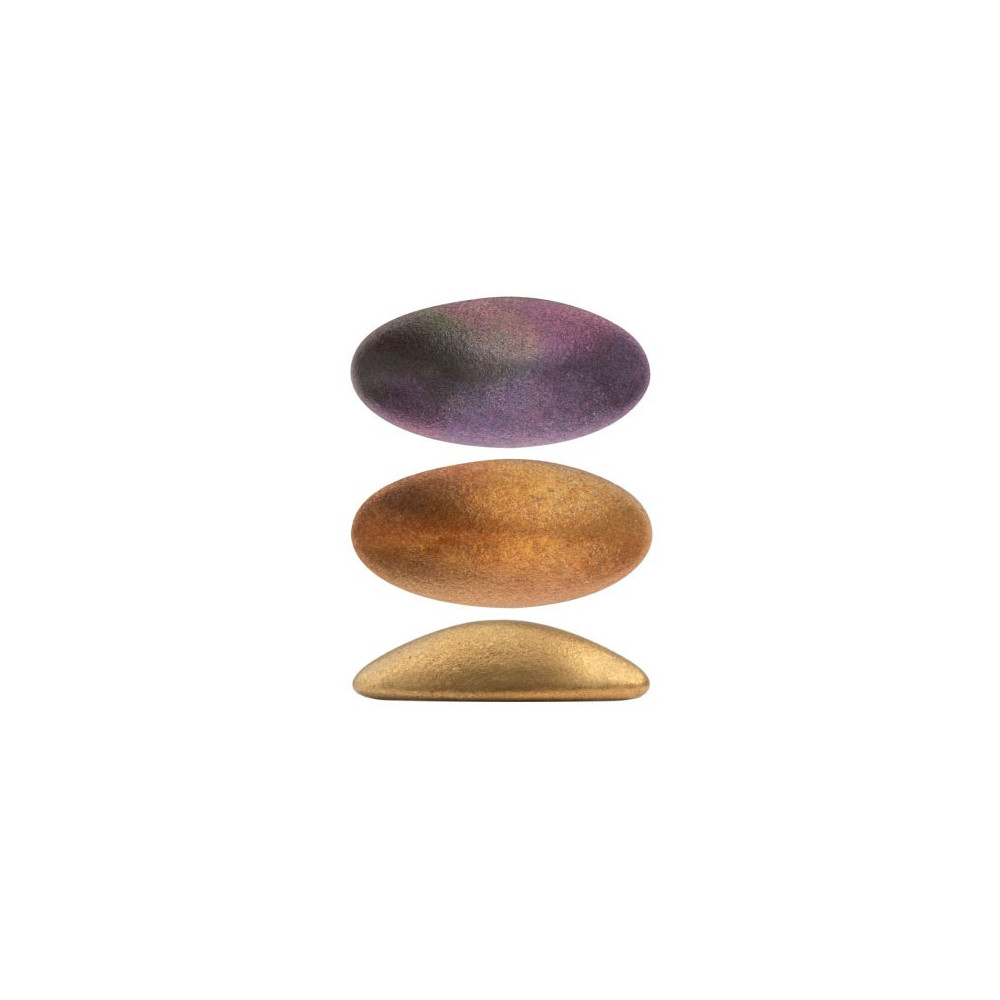 Gold and purple hues shimmer across a smooth, pebble-like surface, offering a regal centerpiece for your next high-fashion jewelry project. These uniquely shaped, hole-less elements bring a sophisticated French touch to bead embroidery and soutache, allowing the designer to focus on the interplay of light and texture without the distraction of visible holes. By utilizing glue-on techniques or custom bezel settings, Athos® par Puca® cabochons invite you to create seamless, professional-grade statements that capture the essence of artisanal luxury.