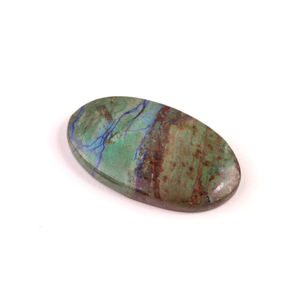 Discover the captivating allure of our Natural Stone Cabochon Azurite Line, sourced from the heart of Africa. This stunning piece, measuring 40x23x6 mm and weighing 10.21 g, boasts a mesmerizing blend of deep blues and subtle greens, characteristic of azurite’s rich mineral composition. Each cabochon is a one-of-a-kind treasure, ensuring that no two pieces are alike, making your creations truly unique.