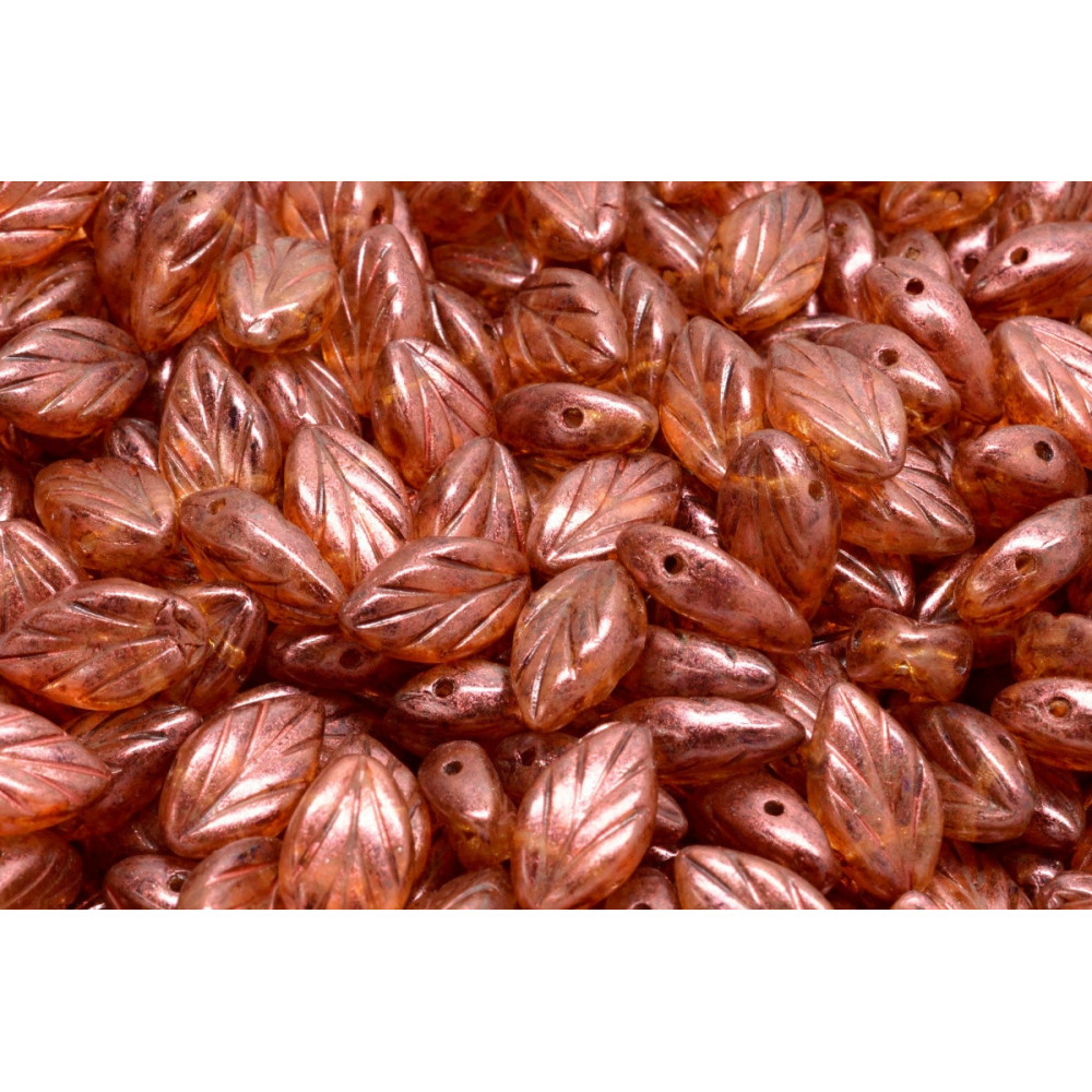 Introducing the exquisite Beech Leaf Beads from the esteemed Czech manufacturer Rutkovsky. Measuring 7x11mm, these captivating glass beads are designed to elevate your jewelry creations with their distinctive leaf shape and intricate detailing. The Opaque Salmon Spotted color offers a warm, inviting hue that harmonizes beautifully with a variety of palettes, making them an essential addition to any crafter's collection.