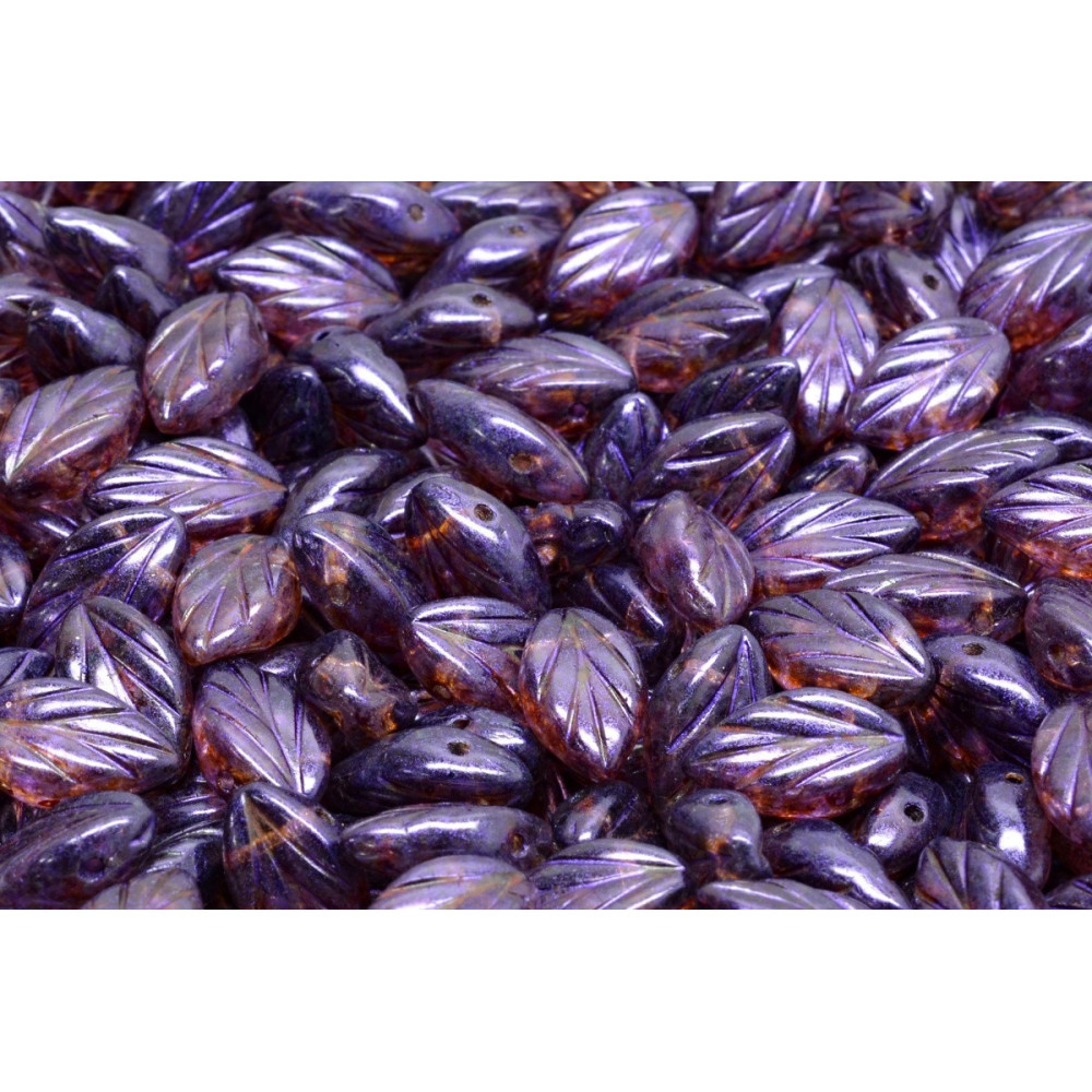 Unleash your creativity with the enchanting Beech Leaf Beads in Opaque Dark Violet Spotted and bring the elegance of nature to your jewelry designs!