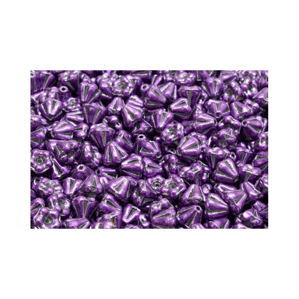 Violet tones and a shimmering metallic finish define these exquisite Bell Flower Beads 4 x 6 mm, which are an essential component for any designer focusing on botanical jewelry themes. These precision-pressed glass blossoms capture the essence of a spring garden, offering a rich saturation of color that adds depth to even the most complex beadwork patterns. Using these floral shapes allows for the creation of intricate, three-dimensional textures in earrings and statement necklaces that stand out in the current trend for romantic, nature-inspired accessories.