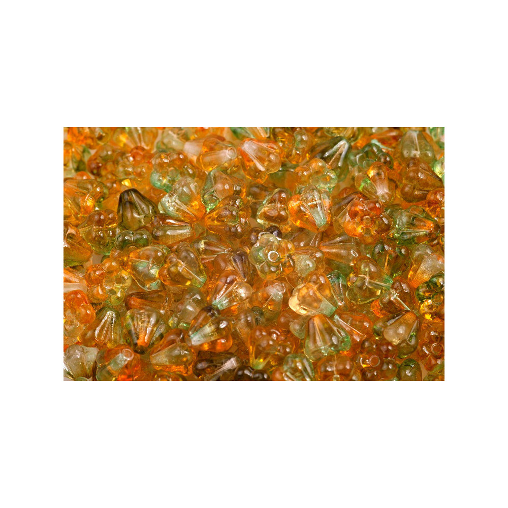 Bell Flower Beads 4x6mm Green Orange 00030/48024