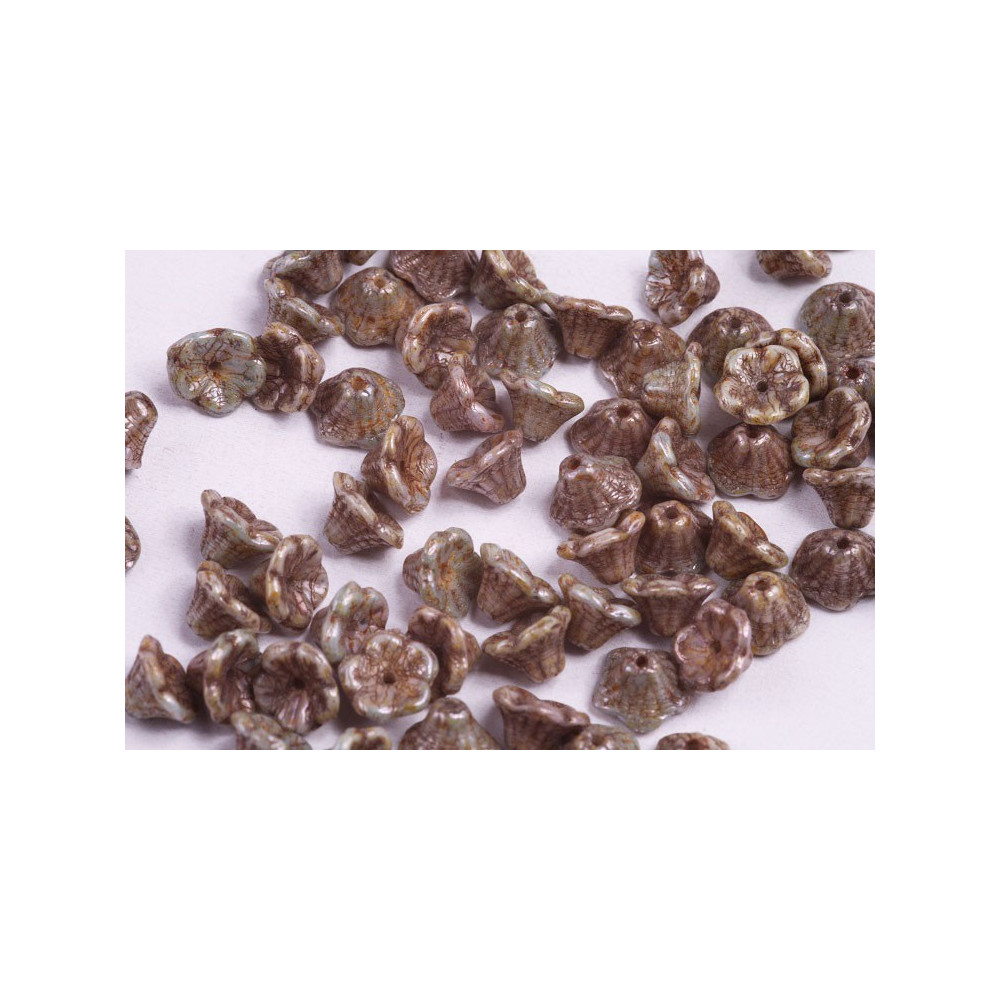 Bell Flower Cup Beads 7x5mm - White Alabaster Brown Flare 02010/23001 Size: 7 x 5 mm Hole size:...