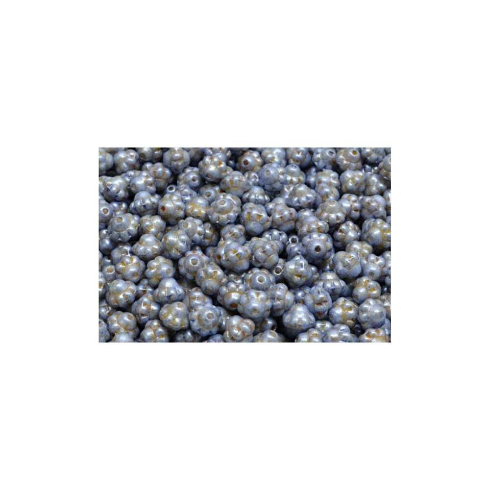Dusty blue tones combined with warm, sandy accents make this colorway exceptionally versatile for seasonal palettes. For a striking contrast, pair with dark sapphire crystals, or use harmonious ivory and gold accents to highlight the bead's intricate mold details. Incorporating size 10/0 Preciosa seed beads as spacers between each spinner will help accentuate their floral-like silhouette, celebrating a handmade Czech glass tradition that has been refined over generations of artisan craftsmanship.