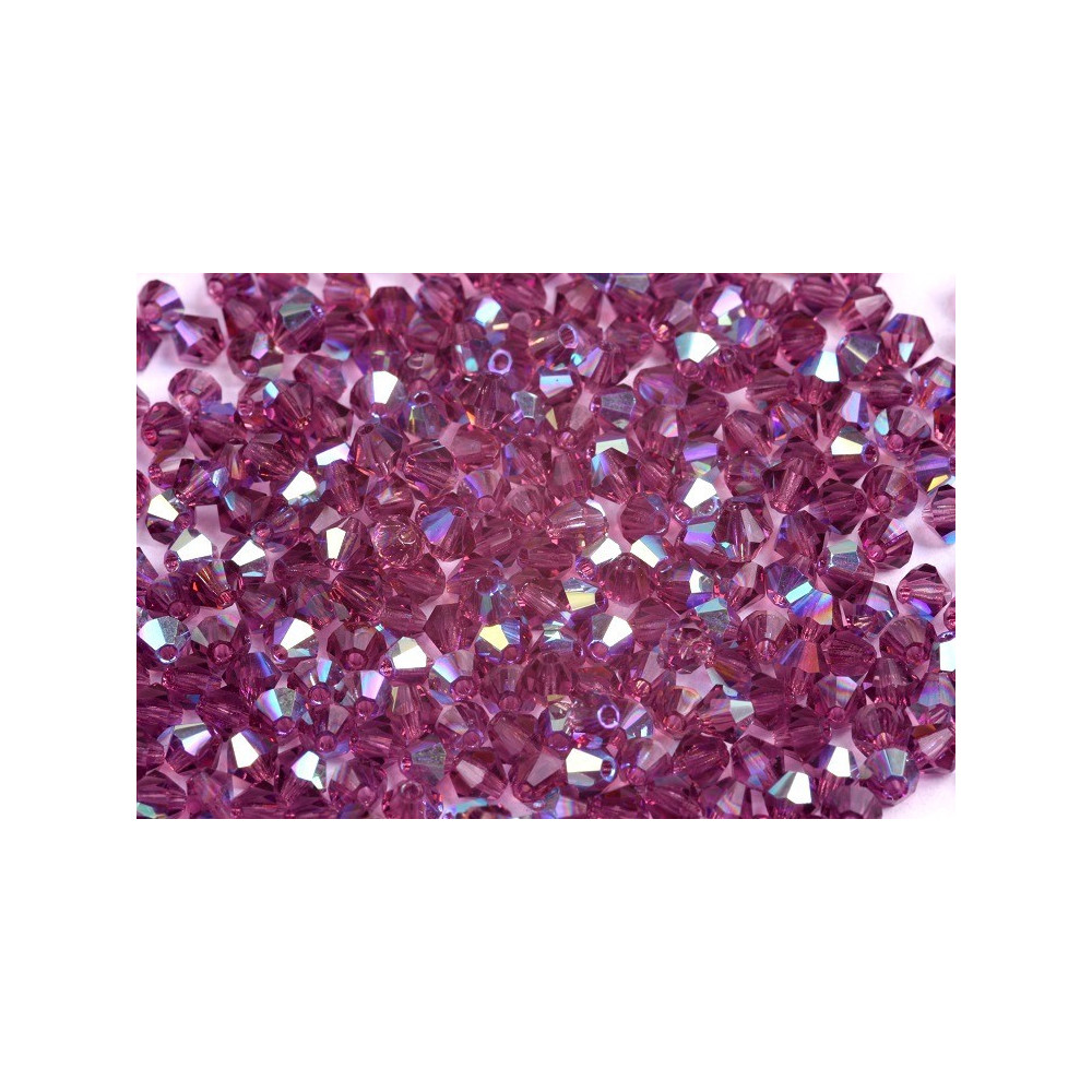 Introducing the exquisite Amethyst AB Bicone Beads from Rutkovský, a distinguished manufacturer hailing from the heart of the Czech Republic. These 3 mm beads, crafted with precision using a specialized pressed-glass technique, embody the elegance and artistry that Czech glassmaking is renowned for. Each bead features a beautifully tapered form that captures and refracts light, creating a stunning visual effect that enhances any design.