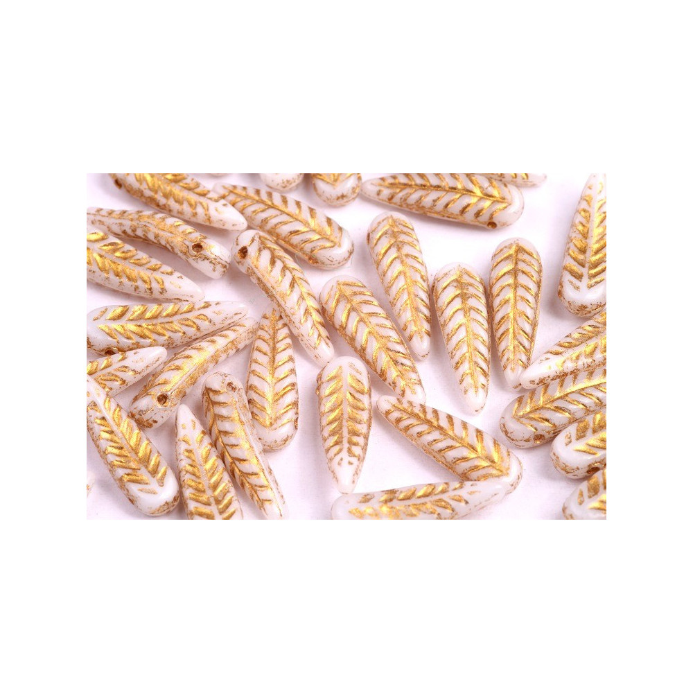 With their exquisite design and versatile applications, the Bird Feather Beads in White Alabaster and Gold are a must-have for any bead maker or creative individual. Elevate your designs and let your imagination soar with these stunning Czech glass beads from Rutkovsky, a beacon of quality and craftsmanship in the world of bead manufacturing.