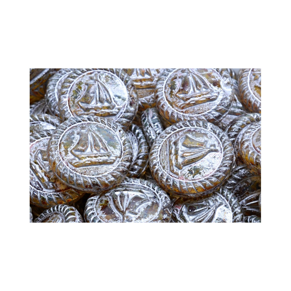 Introducing the Boat Medallion—a distinctive Czech glass bead that embodies the serene beauty of the sea. This exquisite bead, crafted by the renowned Rutkovsky in the Czech Republic, features a unique boat-shaped medallion design that adds a touch of nautical elegance to your jewelry creations. Measuring 20x20 mm, it serves as an ideal focal point for necklaces, bracelets, and statement earrings, ensuring your designs stand out from the crowd.