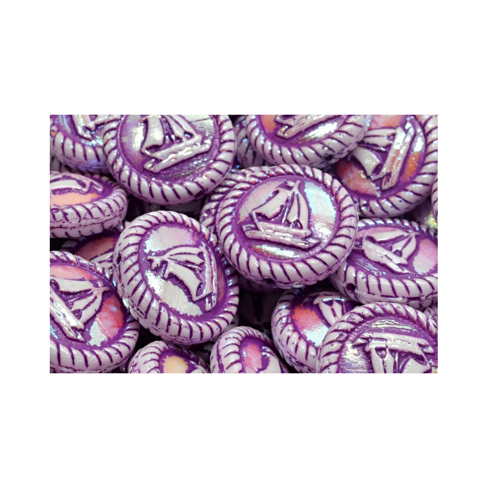 Introducing the Boat Medallion—a distinctive Czech glass bead that effortlessly combines nautical elegance with artistic flair. This eye-catching bead, with its unique boat-shaped medallion design, serves as an exquisite focal point for your jewelry creations, whether you are designing necklaces, bracelets, or statement earrings. Crafted by the esteemed Rutkovsky manufacturer in the Czech Republic, this bead is a testament to the artistry and expertise of Czech glass-making traditions.