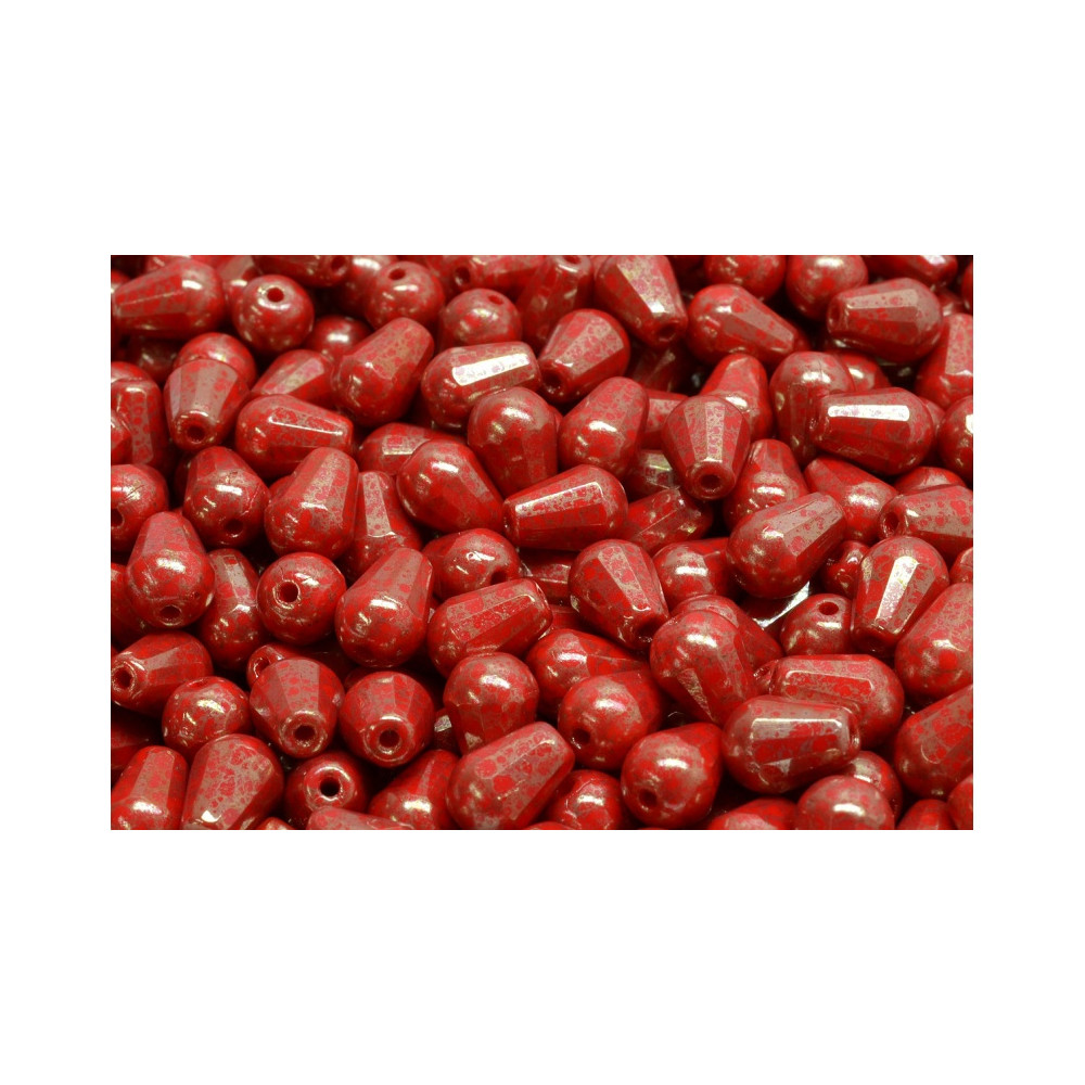 Deep red tones meet an artistic speckled finish in these exquisite teardrop shapes, offering a bold yet sophisticated look for your next creative project. These Firepolished Drop Beads are a testament to the Rutkovsky family's multi-generational commitment to traditional Czech glassmaking, where every bead is hand-pressed and carefully faceted to catch the light. The unique mottled finish adds a rustic, earthy texture that makes each piece feel like a one-of-a-kind artifact from the heart of Northern Bohemia, perfect for jewelry with a bohemian or vintage aesthetic.