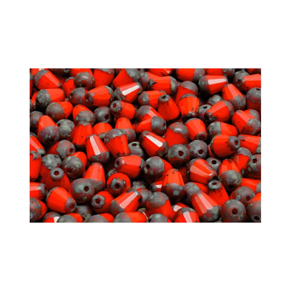 Vibrant opaque red meets artisanal texture in these Firepolished Drop Beads, meticulously hand-pressed by the renowned Rutkovsky family. Measuring 8 x 6 mm, each teardrop-shaped bead features precision-cut facets that are thermally polished to achieve a high-gloss luster. The technical execution ensures a consistent 0.8 mm hole size, allowing for smooth passage of standard beading wires and pins while maintaining structural integrity for complex weaving projects.