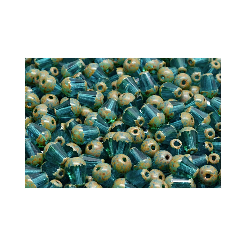 Teal and bronze tones merge beautifully in these artisan glass pieces, reflecting the rich tradition of Bohemian glassmaking. The unique Picasso finish creates a weathered, stony appearance that perfectly complements the faceted surface of each drop. Designers often choose this specific 8 x 6 mm size for creating balanced dangles in earrings or focal accents in boho-chic necklaces, as the teardrop shape provides a graceful silhouette for any jewelry project.