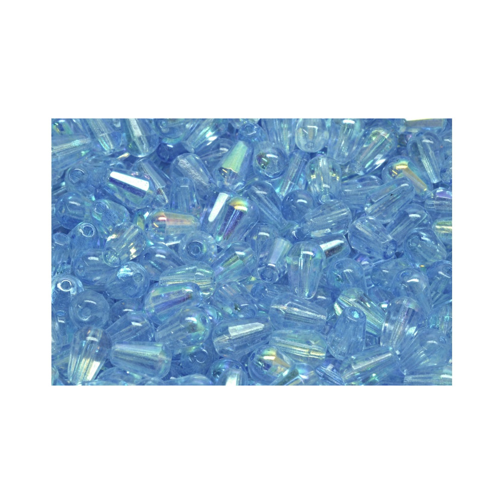 Faceted surfaces on these Firepolished Drop Beads are precision-cut to maximize light refraction, creating a shimmering effect that enhances any jewelry design. The light blue base glass is treated with a high-quality AB (Aurora Borealis) finish, adding a subtle rainbow iridescence that shifts with movement.