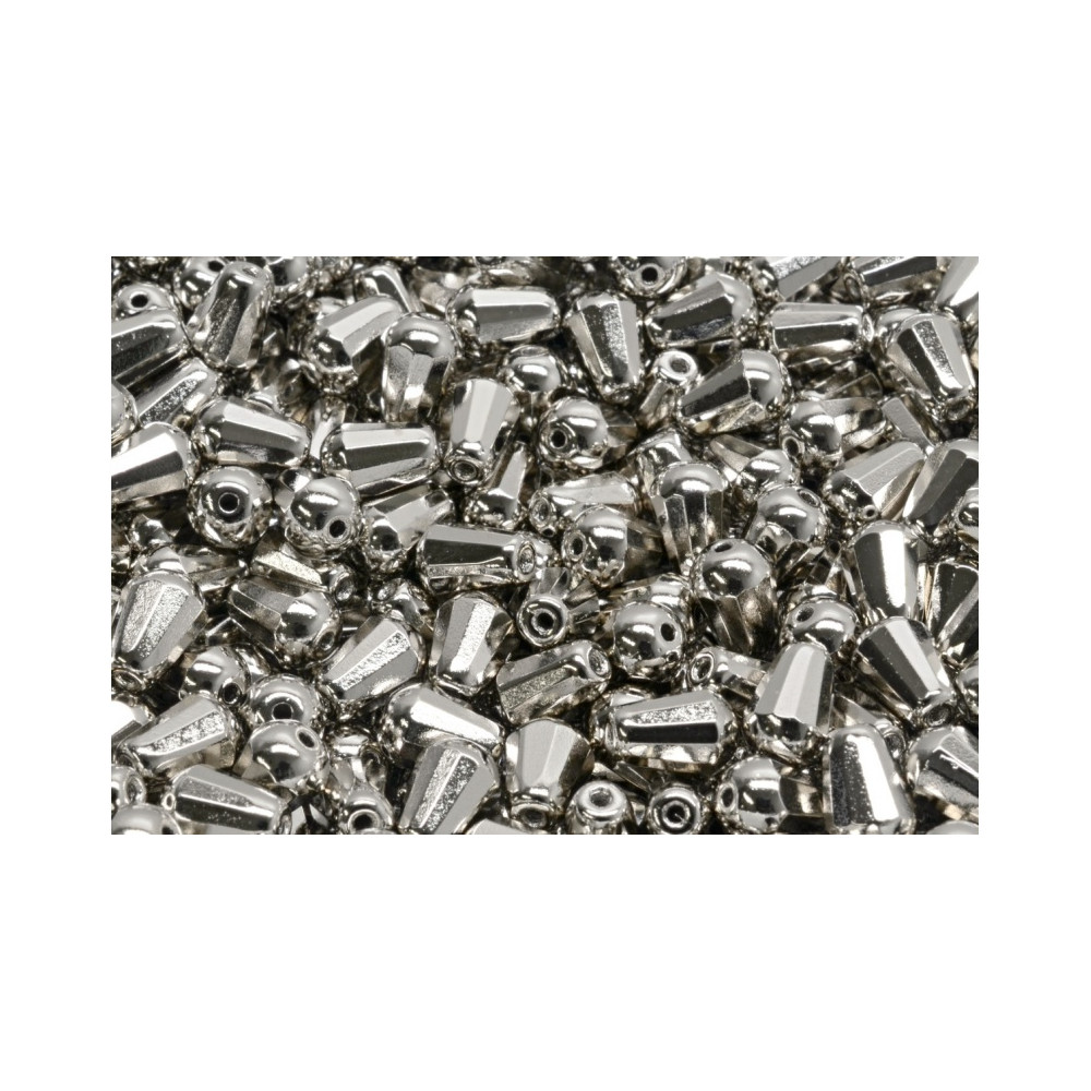 Faceted silver surfaces bring a high-shine, liquid metal aesthetic to these Firepolished Drop Beads. Originating from the heart of Northern Bohemia, these beads are meticulously produced by Rutkovsky, a family-owned workshop that has preserved the art of traditional Czech glassmaking for generations. Each piece is machine-cut and then fire-polished to ensure a brilliant, glossy finish that mimics the luster of precious metals while retaining the lightweight durability of Czech glass.