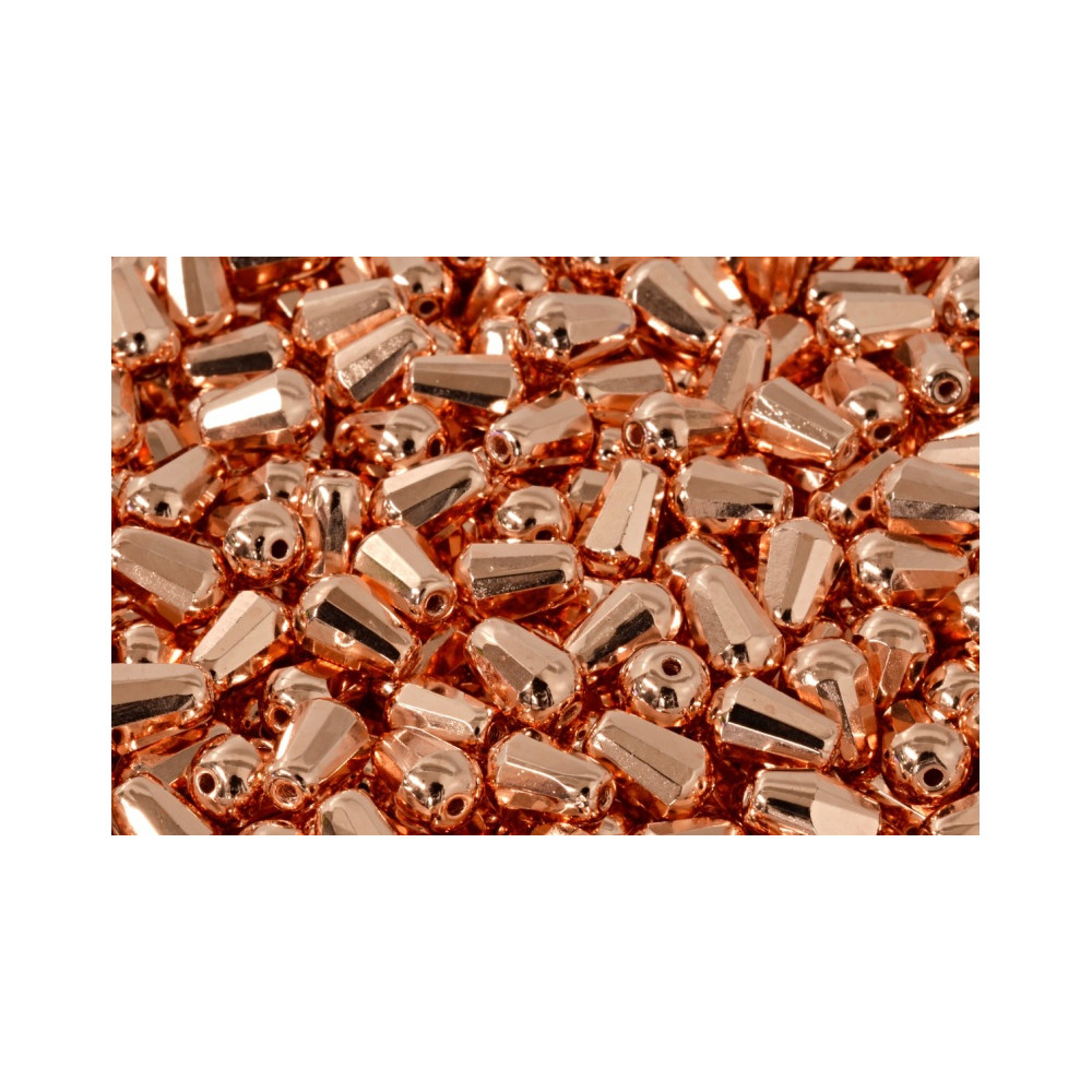 Rose gold metallic finishes provide a sophisticated aesthetic for contemporary jewelry designs, particularly when applied to high-quality Firepolished Drop Beads. These teardrop-shaped components are manufactured by Rutkovsky using traditional pressing techniques followed by precise mechanical cutting and thermal polishing. The resulting faceted surface reflects light with a mirror-like intensity, making them an excellent choice for statement earrings or as focal points in complex bead weaving projects where brilliance is paramount.