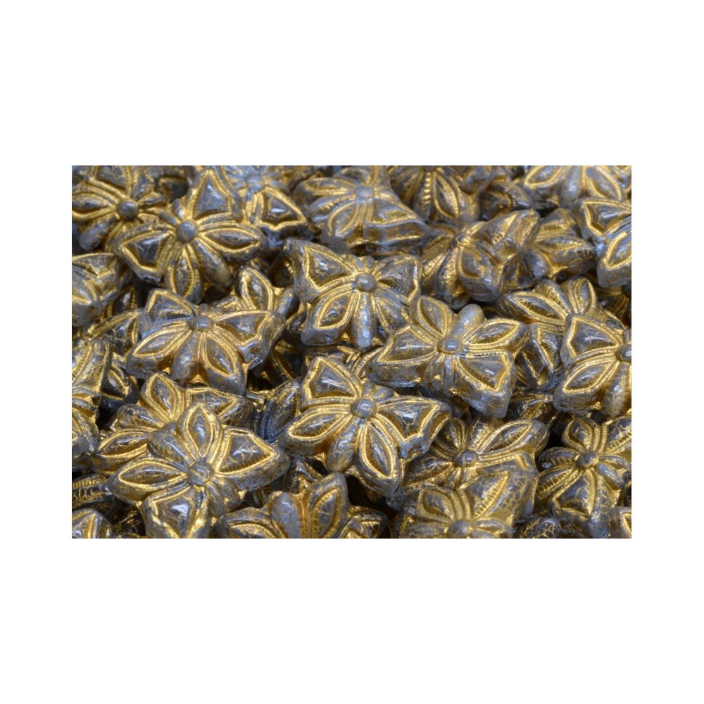 Introducing the exquisite Butterfly Beads from Rutkovský, a renowned Czech manufacturer celebrated for their exceptional glass craftsmanship. Measuring 15x12mm, these pressed glass beads showcase a stunning blend of alexandrite and gold, creating a captivating visual effect that is sure to elevate your beadwork to new heights.