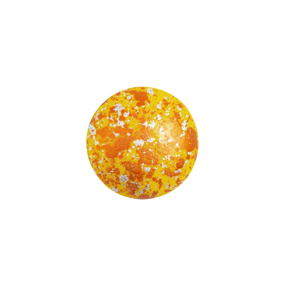Radiant yellow tones and shimmering metallic splatters define this striking centerpiece, bringing a sun-drenched energy to any hand-stitched jewelry design. The vivid opaque base is artfully decorated with an irregular 'tweedy' pattern of orange and silver flecks, ensuring that every 25mm stone possesses its own unique character and visual depth.