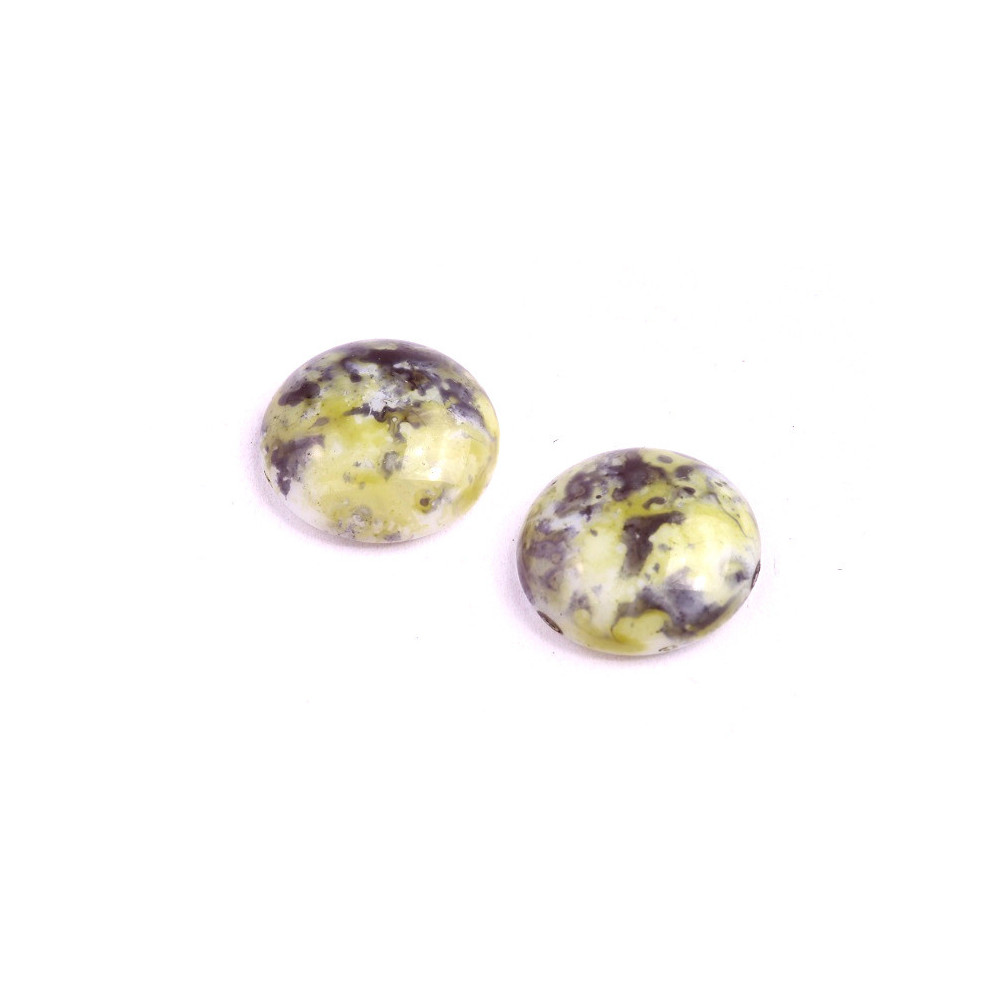 Lime green tones blended with earthy grey swirls make these 18 mm Cabochon Beads a striking choice for nature-inspired jewelry designs. What I love about these is the Picasso finish, which provides an organic, stone-like appearance that adds instant depth to any project. These pieces are handmade Czech glass, created using traditional pressing techniques that have been part of the Rutkovsky family heritage for generations, ensuring that no two cabochons are exactly alike.