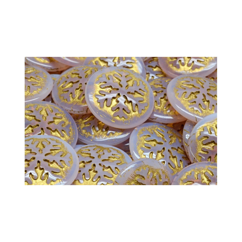 Opal pink glass and radiant gold detailing combine to create these exquisite snowflake themed Cabochon Beads. Each piece is meticulously produced using traditional Czech glassmaking heritage techniques, ensuring a unique and high-quality finish for your jewelry designs. The delicate 21 mm size provides a stunning focal point for winter-themed accessories or holiday-inspired collections.
