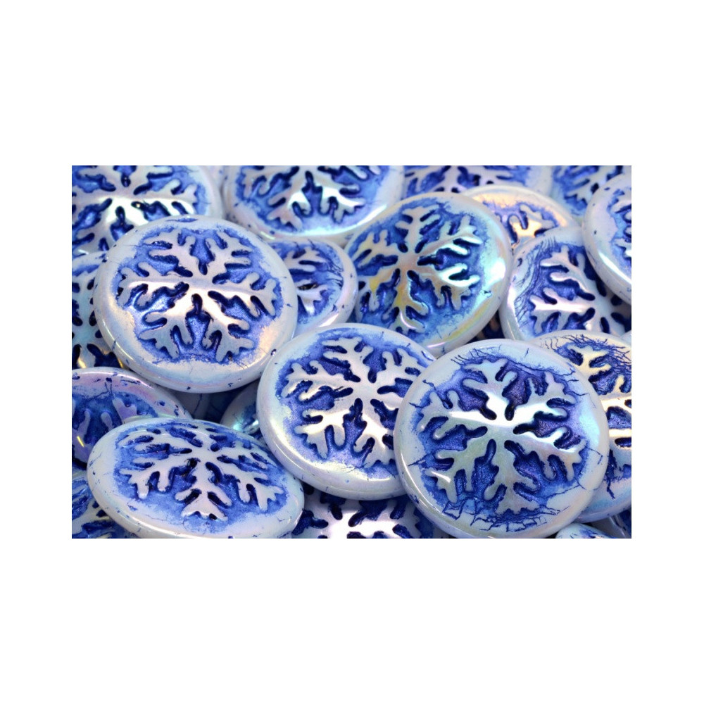 21 mm Snowflake Glass Cabochon Beads White and Blue