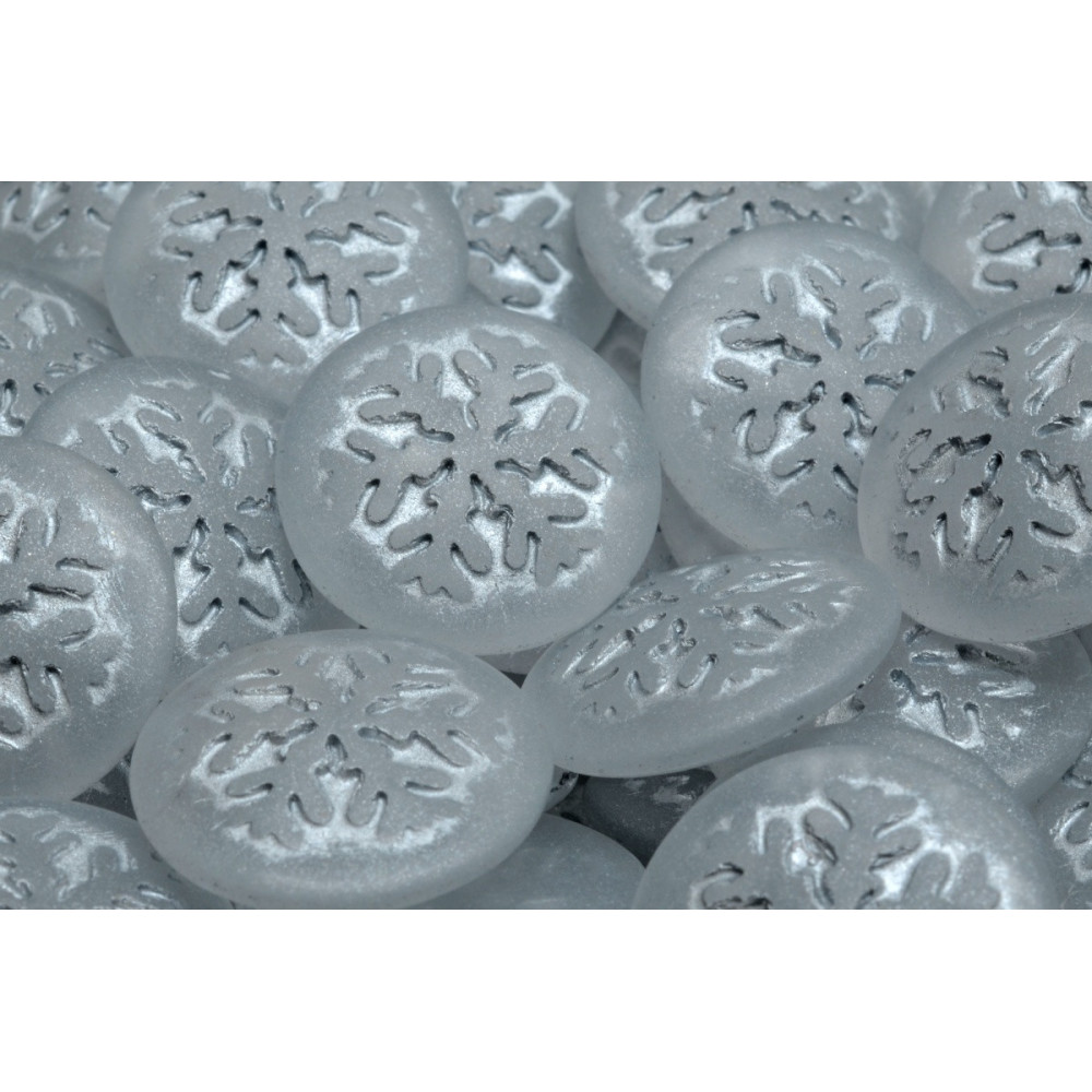 Snowflake Crystal Silver Czech Glass Cabochon Beads 21 mm Crystal with Silver