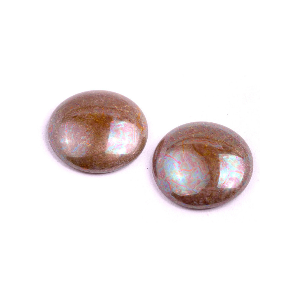Large 25 mm glass cabochons serve as a magnificent focal point for complex bead embroidery or minimalist jewelry design. The earthy base color provides a sophisticated backdrop for the iridescent surface, which shifts through a spectrum of colors as it catches the light, adding a dynamic, multi-dimensional quality to your artisan creations. This play of light ensures that no two pieces look exactly alike, giving your finished jewelry an exclusive, custom feel.