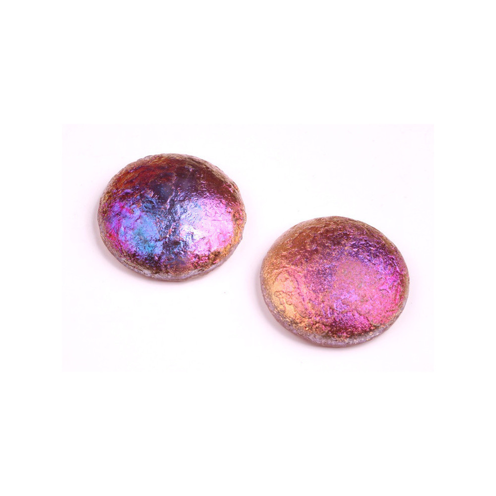 A striking statement pendant begins with this vibrant focal piece, perfect for bead embroidery or wire-wrapping designs. This 25 mm Cabochon Beads element features a unique crinkled texture that catches the light from every angle, revealing a stunning spectrum of fuchsia, violet, and aquatic blue. Whether you are creating a bold gala necklace or a celestial-themed brooch, the etched finish adds a sophisticated, artisanal depth that machine-made components simply cannot replicate.