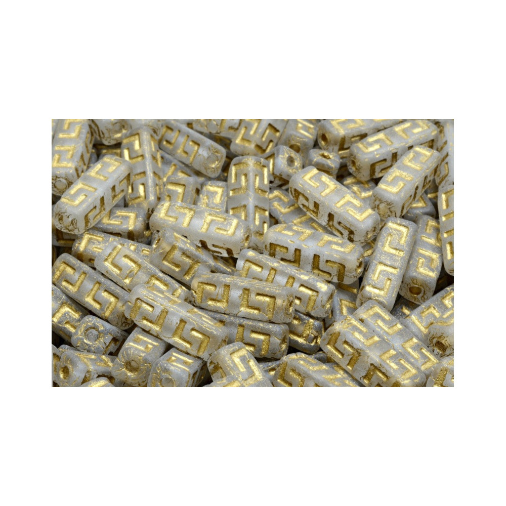 Introducing the exquisite Celtic Block Beads from Rutkovský, a renowned manufacturer based in the Czech Republic. These stunning beads, measuring 15x5mm, are meticulously crafted from high-quality Czech pressed glass and showcase an intricate, engraved geometric pattern that pays homage to ancient Celtic and Greek motifs. The elegant design and structured form of these rectangular beads make them an ideal choice for creating bold, sophisticated jewelry designs that are sure to turn heads.