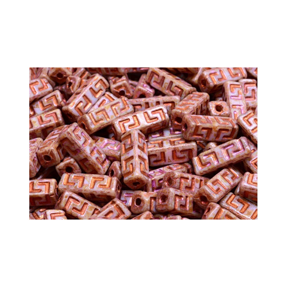 Each pack contains six carefully crafted beads, ensuring you have enough to bring your creative visions to life. With their high-quality Czech craftsmanship and enchanting design, the Celtic Block Beads in Opaque Pink Spotted/Copper from Rutkovsky are not only a beautiful addition to your collection but also a versatile asset for any crafter.