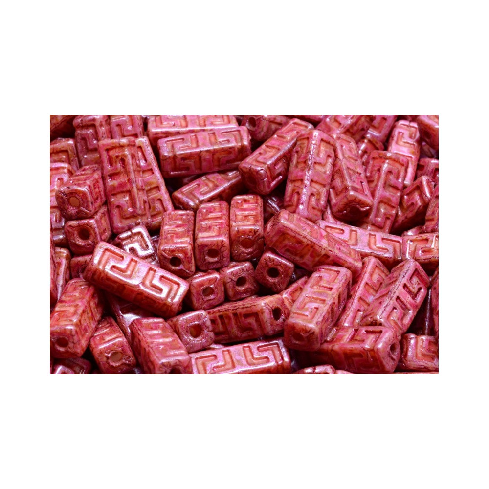 Discover the elegance of ancient artistry with our stunning Celtic Block Beads from the renowned Czech manufacturer, Rutkovsky. Measuring 15x5mm, these exquisite beads feature an intricate geometric pattern that harkens back to the rich heritage of Celtic and Greek design. Crafted from high-quality Czech pressed glass, each bead showcases a unique blend of opaque violet with striking red spots, creating a captivating visual effect that is both bold and sophisticated.