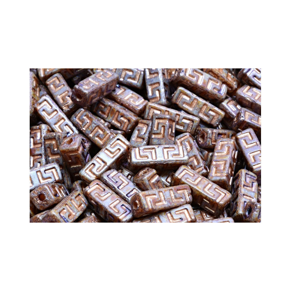 Let your imagination run wild as you incorporate these exquisite Czech-made Celtic Block Beads into your designs. Whether you're crafting personalized gifts or creating bold statement pieces, the Opaque Grey Spotted with Antique Copper beads will add a timeless elegance to every project. Elevate your jewelry creations with Rutkovský's high-quality craftsmanship and celebrate the beauty of history through your art.