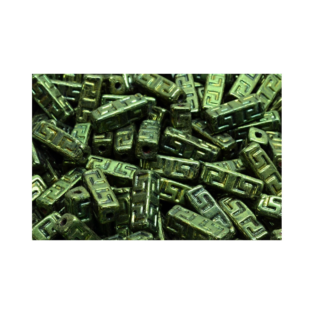 Introducing the stunning Celtic Block Beads from the renowned Czech manufacturer Rutkovský. These exquisite 15x5mm beads are crafted from high-quality pressed glass, showcasing an intricate, engraved geometric pattern that evokes the timeless beauty of ancient Celtic and Greek designs. With their structured rectangular form, these beads are ideal for adding a touch of history and sophistication to your jewelry creations.