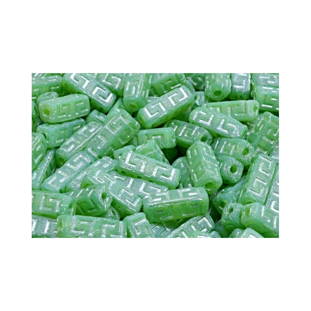Discover the enchanting beauty of our Celtic Block Beads, expertly crafted by the renowned Czech manufacturer Rutkovsky. These exquisite 15x5mm beads showcase a stunning chrysolite opal mat finish paired with intricate geometric engravings, reminiscent of ancient Celtic and Greek artistry. Each bead is a work of art, designed to add a touch of history and sophistication to your jewelry creations.
