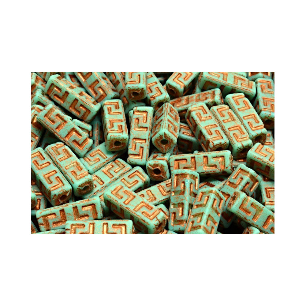 Elevate your jewelry designs with the exquisite Celtic Block Beads from the esteemed Czech manufacturer Rutkovský. These stunning beads, measuring 15x5mm, showcase an intricate engraved geometric pattern that draws inspiration from ancient Celtic and Greek motifs. Crafted from high-quality Czech pressed glass, these rectangular beads are not only a testament to fine craftsmanship but also an elegant addition to your creative projects.